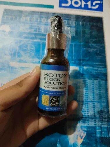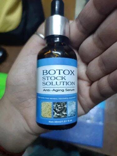 Infused with Botulinum toxin, a substance used in botox injections, this concentrated serum effectively Downplaying facial fine lines and wrinkles. Botulinum toxin in cosmetic form reduces and fades forehead creases, frown lines, and crow's feet near the eyes.